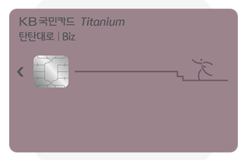 KB국민 탄탄대로 Biz 티타늄 카드: 주유, 대중교통, 통신 등 직장인 필수 영역에서 높은 할인율 제공.